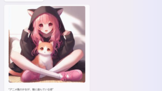 とりあえず「猫の画像を作ってください」と質問してみる。