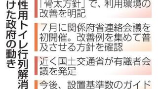 政府、女性トイレ行列解消へ本腰 設置基準数策定進推で格差是正へ